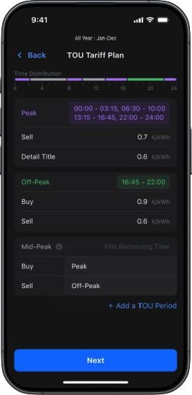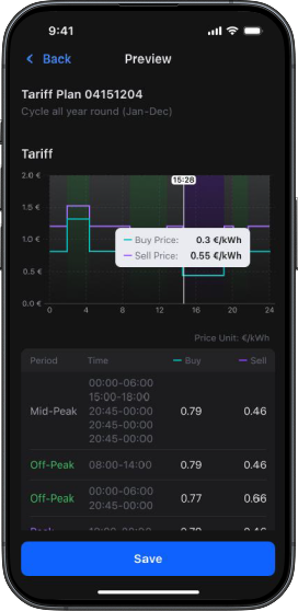 Set Manual Tariff, in minutesSet up to 96 slots of tariff, with easy steps.